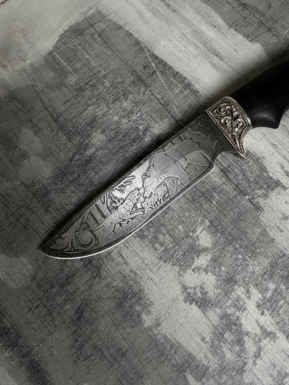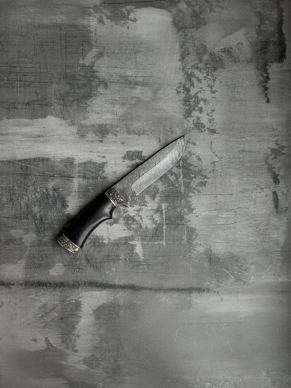 1. Нож из дамасской стали с гравировкой «Близнец», рукоятьчерное дерево