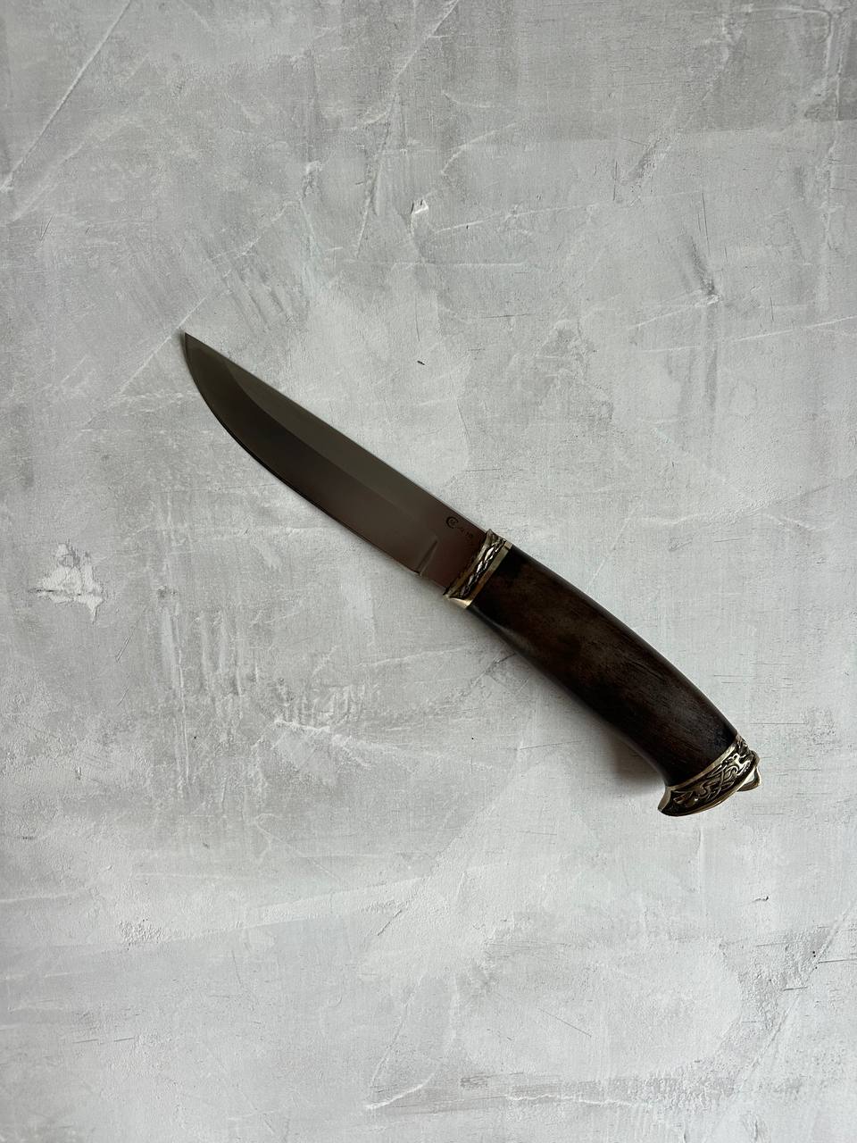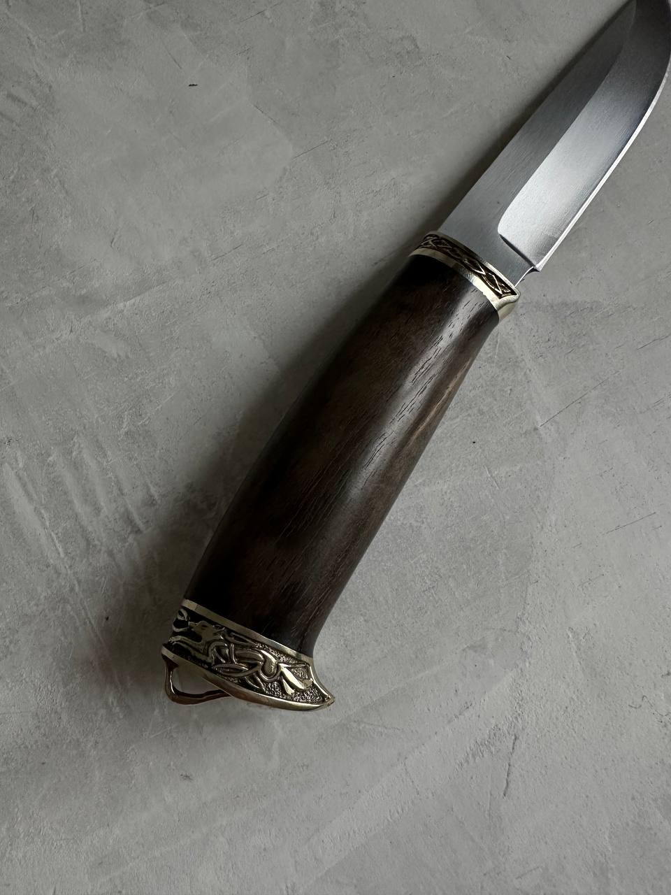 1. Нож из стали VG-10 «Ястреб», рукоять литье мельхиор, ореховый кап.