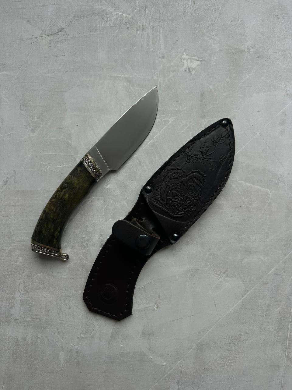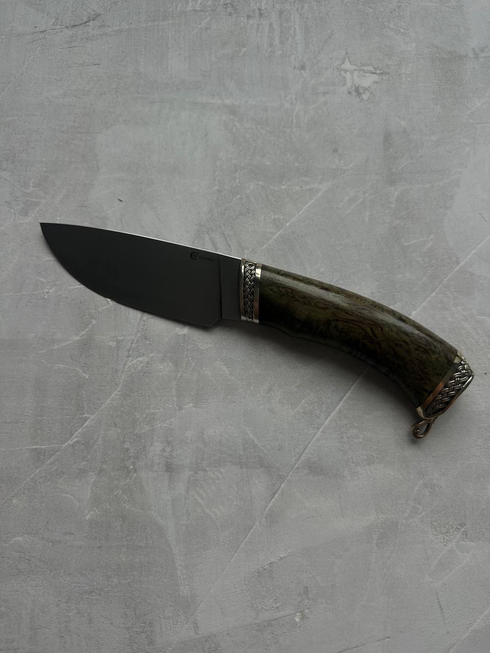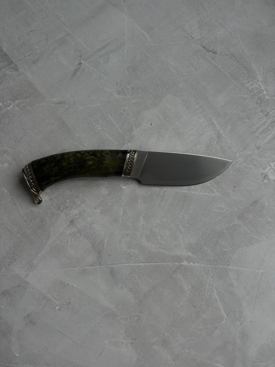 Рукоять - литье мельхиор, стабилизированная карельская береза.