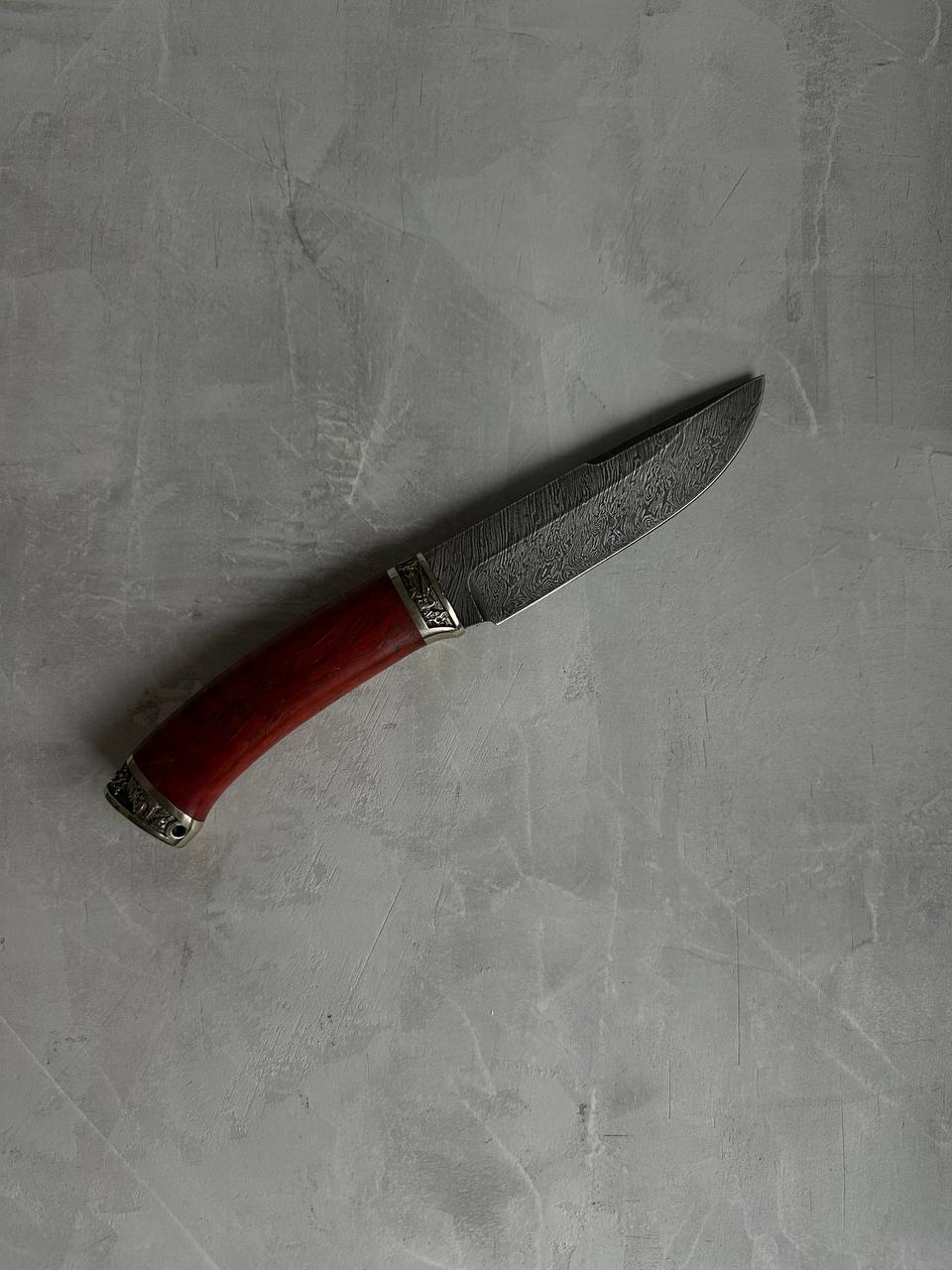 1. Нож из дамасской стали "Соболь" с рукоятью из карельской березы.